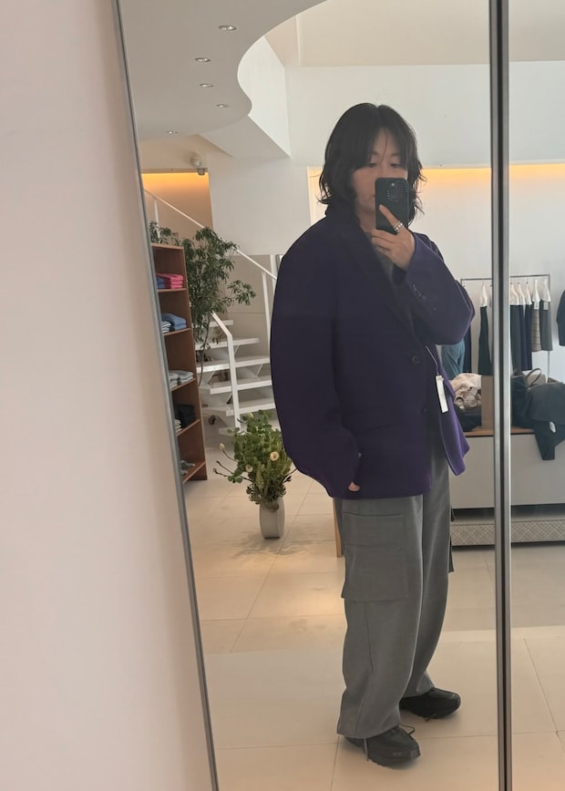 デザインがシンプルなぶん、わたしは思いきって色で冒険することに! パープルをチョイスしました。でも決して派手になりすぎることなく、はいていたグレーのパンツとも好相性♡ そして何よりくたっとしたシルエットが最高!