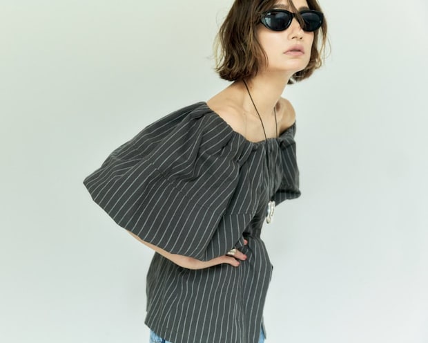 パフスリーブとドルマンスリーブの掛け合わせのような袖のシルエットが秀逸。パフスリーブにありがちな甘さやコンサバ感がなく、ウエストインもしやすい。女性らしくカッチリし過ぎないニュアンスのあるデザインが素敵で、マニッシュなシャツを敬遠しがちな方でもトライしやすいはず。