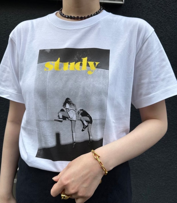「パリ発のファッション&カルチャー誌、スタディとビオトープのコラボレーションTシャツは、グラフィカルな写真がプリントされたデザインが可愛いのと、柔らかい生地で着心地がとてもいいので気に入っています」STUDY for BIOTOPのTシャツは本人私物