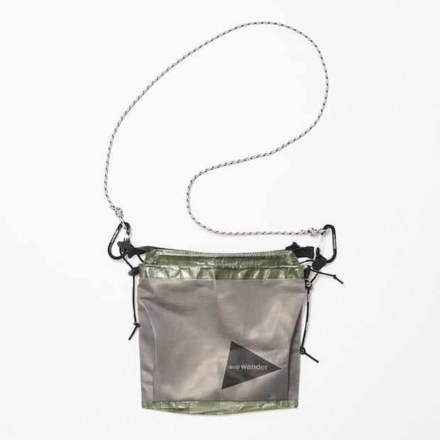 レーシングボート用の高機能セイルなどに使用されている生地で、超軽量なのに、防水性に優れているという名作。カラビナを外せばポーチとして使うこともできます。サコッシュ¥13,200(アンドワンダー)
