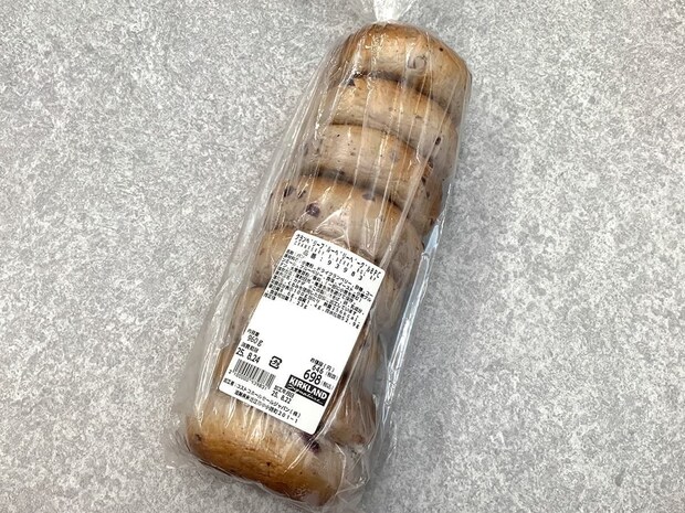 コストコの他のベーグルと同様、8個入りで698円(税込)。一個あたり約132g(約369kcal)、直径約10cmと、手のひらを超える、ずっしりとした、いかにもコストコらしいサイズ感です。