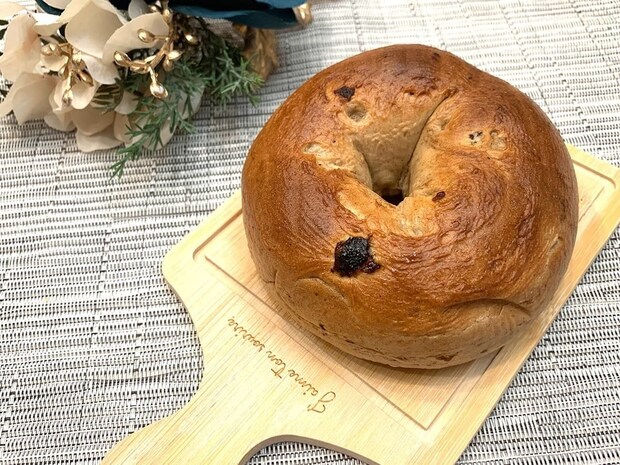 シナモンとレーズンの芳醇な香りが魅力の「シナモンレーズンベーグル」。弾力のある生地に、ほんのり甘いレーズンとシナモンが絶妙にマッチしています。