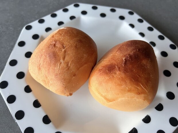 パンは、一般的なロールパンよりやや大きめで、多少不揃いな形も魅力の一つ。トースターで温めると、外はサクッと、中は驚くほどふわふわの食感になります。