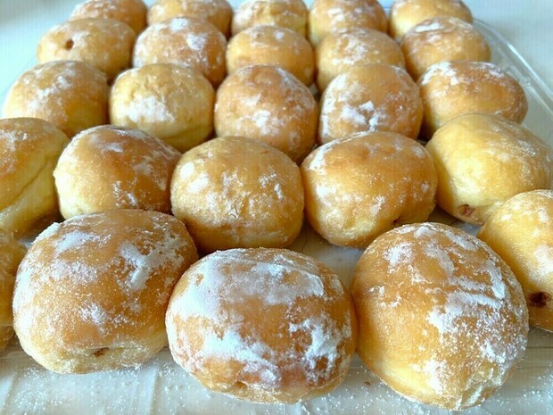 しっとりとしたベニエ生地の周りには粉糖がまぶされ、中には濃厚なヘーゼルナッツ風味のココアクリームが入っています。