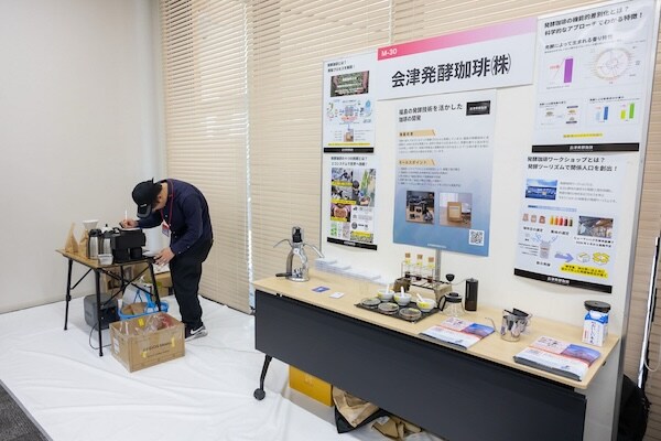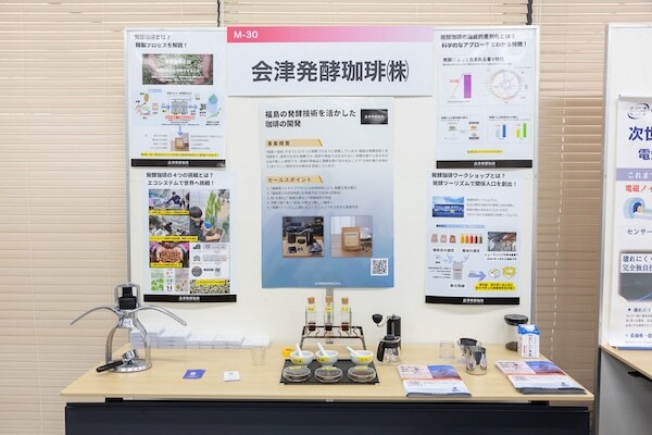 成果発表会には、2日間でのべ100名がブースへ立ち寄り、「福島の桃で発酵した珈琲」「会津の甘酒で発酵した珈琲」合計200杯以上の試飲を提供したとのことだ。