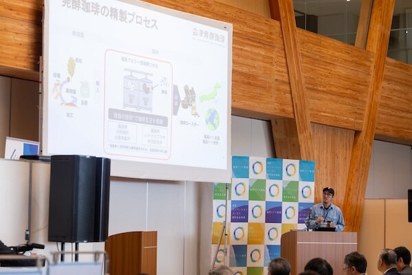 Fukushima Tech Create 2026 成果発表会には、会津発酵珈琲の代表取締役CEOの藤原多聞氏が登壇。