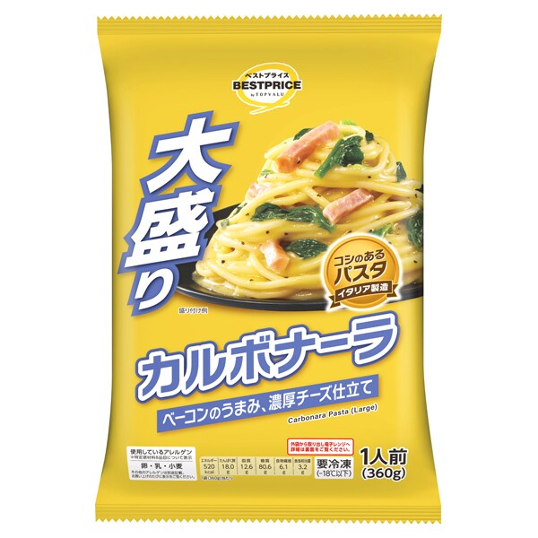 濃厚チーズ仕立てでクリーミーなソースが特徴のカルボナーラ。360g。