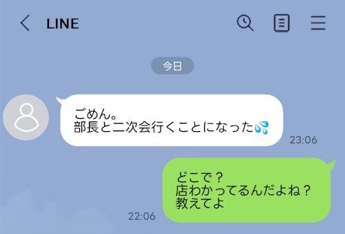 飲み会に旦那が行ったんやけど「明日も仕事やから一次会だけで終わって帰ってくるよー」っつったのにさっきLINEが来て「ごめん。部長と二次会行くことになった」って来た。