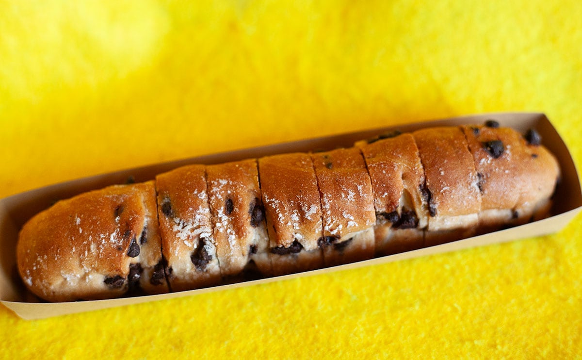 商品名のままですが、チョコチップを混ぜ込んで香ばしく焼き上げたフランスパンを、8切にカットしたという同商品。だいぶ前に食べておいしかった記憶があるので、あらためて食べてみました!