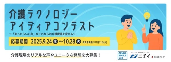 医療、介護、保育サービスなどを全国で提供するニチイ学館は、11月11日の「介護の日」を迎えるにあたり、介護の現場や家庭で生まれる「こんな機器があったら助かる」というアイディアを広く募る「介護テクノロジーアイディアコンテスト」を開催中だ。応募は、10月28日(火)23時59分まで受け付けている。