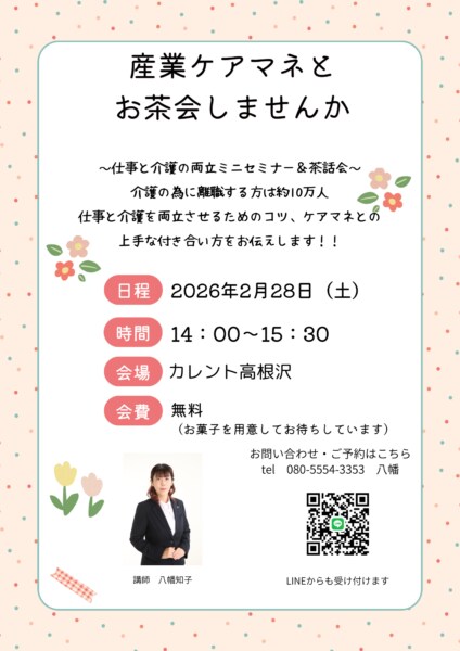 2/28(土) 産業ケアマネとお茶会しませんか〜仕事と介護の両立ミニセミナー&茶話会〜