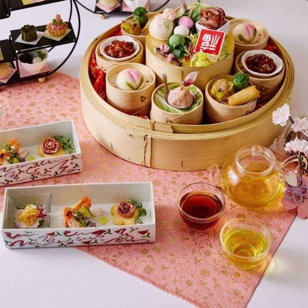 ドリンクは、通常6種類の中国茶に加え、烏龍茶に桜の葉をブレンドした「桜黄金柱」も用意される。まろやかな甘みと桜の香りが広がるお茶とともに、春の訪れを感じるひとときを過ごしてみては。