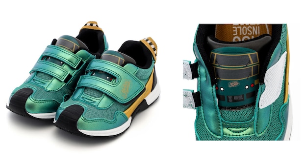 「ゆふいんの森」モデル(GREEN)は、実車の持つヨーロピアン調のシックなメタリックグリーンをシューズで再現しました。レトロモダンな内装や、景色を楽しめるハイデッカー構造で知られる列車の優雅さをイメージしたデザインです。
