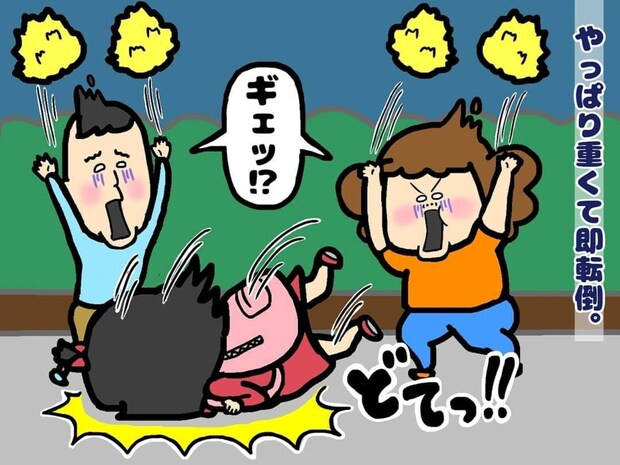 足を鍛えるために始めたトレーニングでは、重たいリュックを背負った主人公がすぐに転倒。その後もいくつもの病院を受診しましたが、原因はわからないまま。不安な中、両親が必死に原因を探し続ける日々が続いていました。