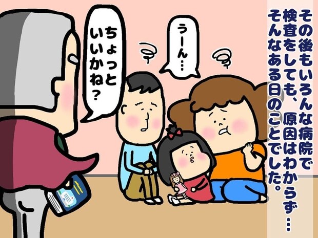 1歳前に歩き始めた主人公でしたが、成長とともに足の遅さや転びやすさが目立つように。心配した両親は、いくつもの病院を訪ねて原因を探します。