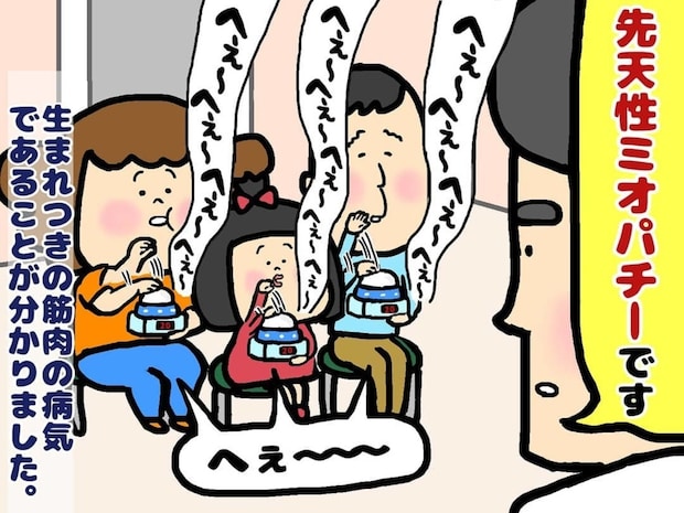 祖父の持っていた本を頼りに訪れた病院で、主人公は「先天性ミオパチー」という生まれつきの筋肉の病気であることが判明しました。