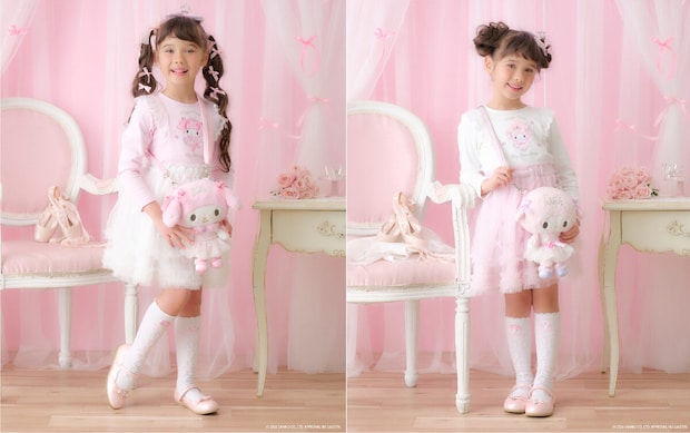 コラボアイテムのカラーは、ロマンティックなピンク。バレリーナになりきったマイメロディとマイスウィートピアノをデザインしました。