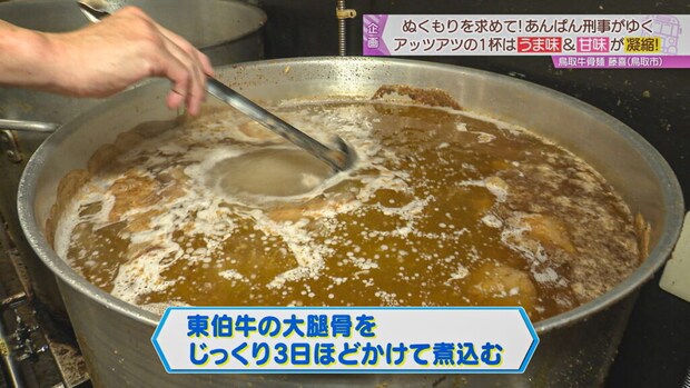 黄金色のスープは、東伯牛の大腿骨をじっくり3日ほどかけて煮込んだものに、