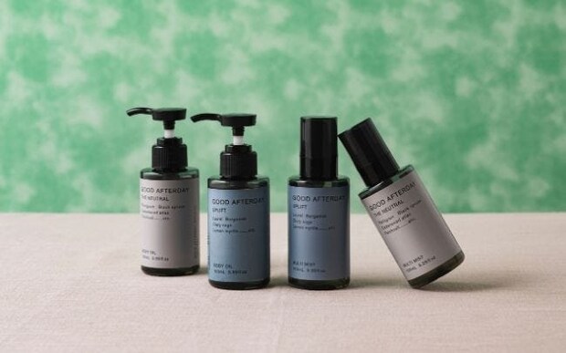 インテリアショップ・アクタスが提案する、睡眠と休息にフォーカスしたケアブランド「GOOD AFTERDAY(グッドアフターデー)のお休み前の気分を整えるオイルとミストのシリーズ。