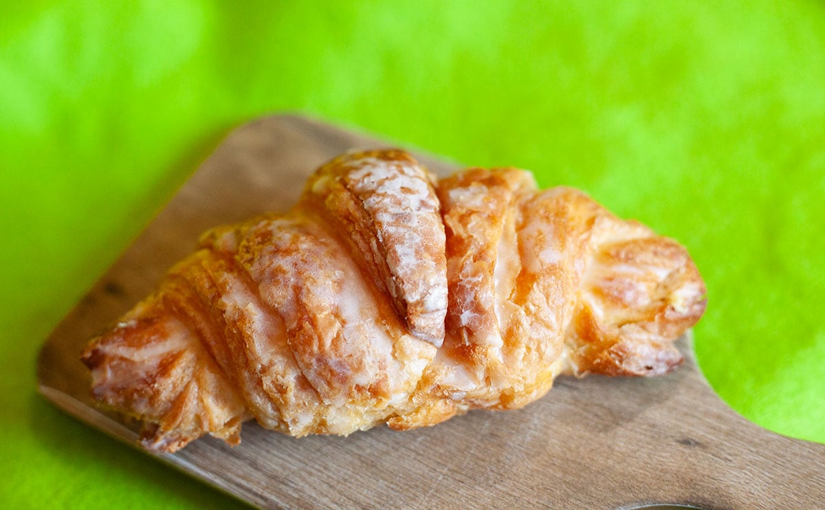 形は、いわゆる普通のクロワッサン。表面はグレーズ的な何かでコーティングされている?