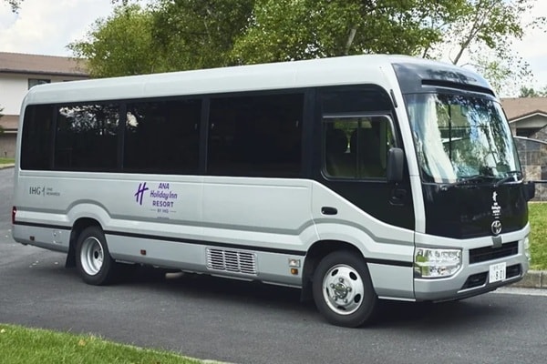 軽井沢駅からホテルへは、無料のシャトルバスが便利だ。乗車場所は軽井沢駅南口ロータリーで、荷物が多くてもスムーズに乗車できる。