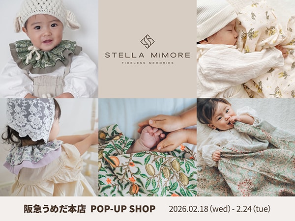 エフ・エヌ・ディーが展開するベビーブランド「Stella Mimore(ステラミモア)」は、2月18日(水)~24日(火)、阪急うめだ本店で開催されるイベント「Hagukumi Bouquet ~First Spring Festa~」に、初のPOP-UPショップを出店する。“赤ちゃんに贈るはじめてのアート”をかたちにした厳選コレクションを披露する。