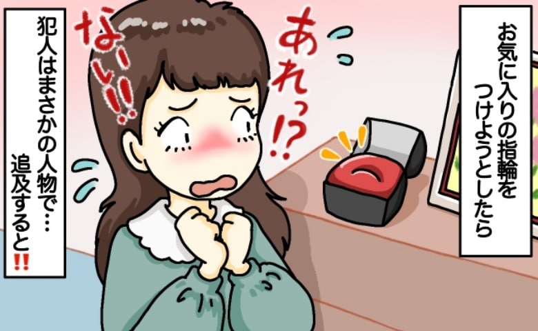 結婚して半年ほど経ったころ。大切にしていたアクセサリー(婚約前に夫からプレゼントされた指輪)がなくなっていることに気づきました。探しても見つからず、どこかに置き忘れたのかと自分を責めていたのですが、ある人物がそっくりの指輪をしていることに気づき……。