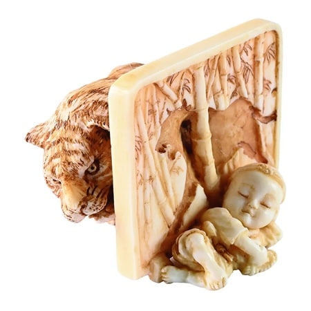 森哲郎(1960~)さんの「一休 虎退治」は、高さ3.5cm。素材は、象牙。