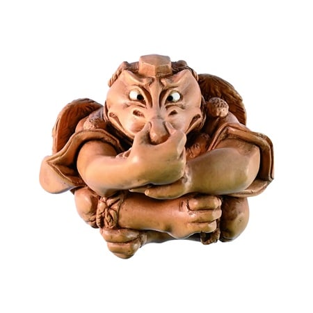 及川空観(1968~)さんの「天愚」は、高さ3.5cm。素材は、朝熊黄楊・鹿角・へご。