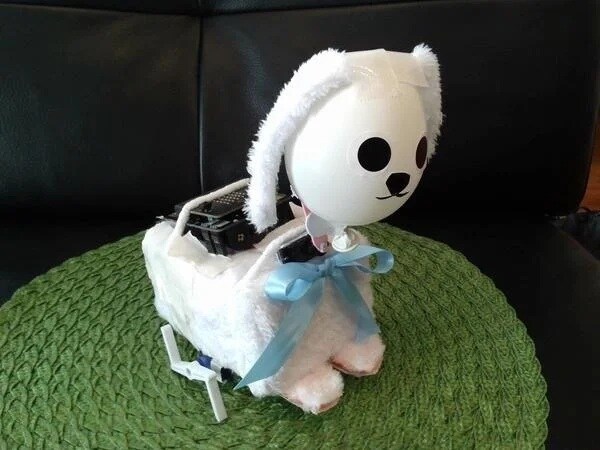 作者による作品の説明は、「ウサギといっしょにあそぶと、ウサギはよろこびます。そして、あそんだ人もうれしくなる『ウサギロボット』です」。