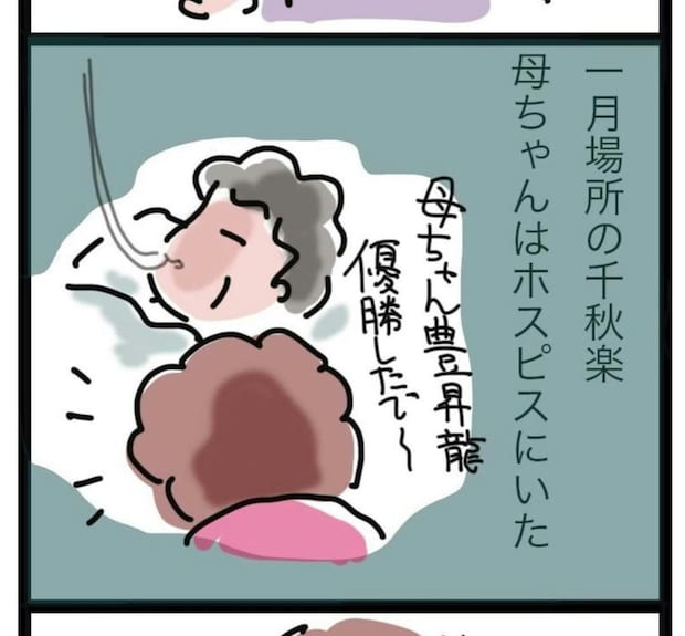 母親がホスピスで療養していた時は体調がとても悪く、おかんさんは元気づけたい一心で、「春場所は一緒に観に行こうね」と声をかけました。