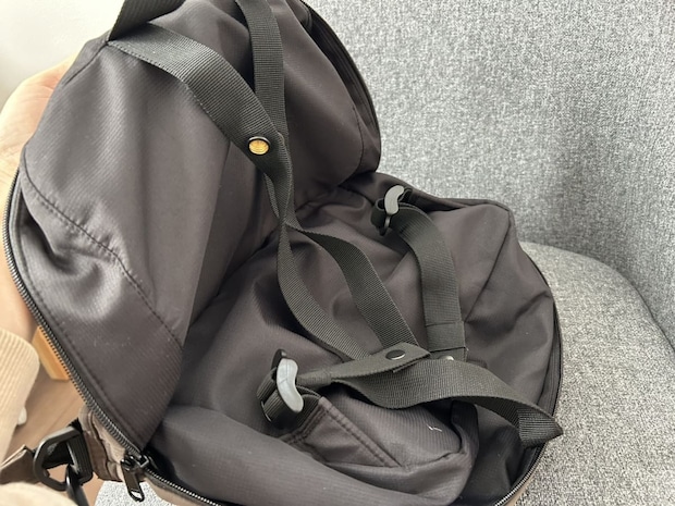 ショルダーバッグの袋部分がリュックの最深部になるので、ショルダーのファスナーは閉めたままでOK。