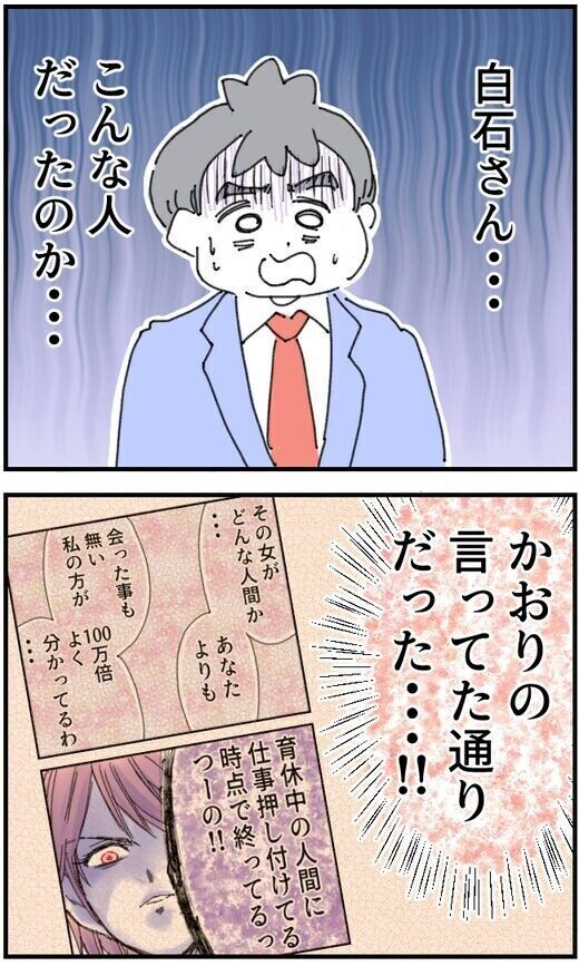 2026年2月14日 ダメダメだった頼りない夫が激変!後輩女子からの脅迫に「君は間違ってる」 マイナビ子育て 長女を出産したばかりの新米ママ・かおり。ほぼワンオペ育児で限界寸前の中、ようやく夫の育休がスタート! しかし夫は育児を甘く見ていて……ついに不満が爆発! 育児の大変さを理解させるため「ワンオペ育児」の現実を突きつける作戦に! 笑いあり涙ありの共感必至な育児奮闘記『夫が育児をなめくさってる件』をご紹介します。『夫が育児をなめくさってる件』 第128回「アンタは黙って私の言うことを聞いていればいいの」いちろうの前で本性を露わにした白石……。✅【続きを読む】 いわれのない「セクハラ」に、夫はどうする!? ✅この漫画を第1話から読む (漫画:くまお/編集・文:マイナビ子育て編集部)