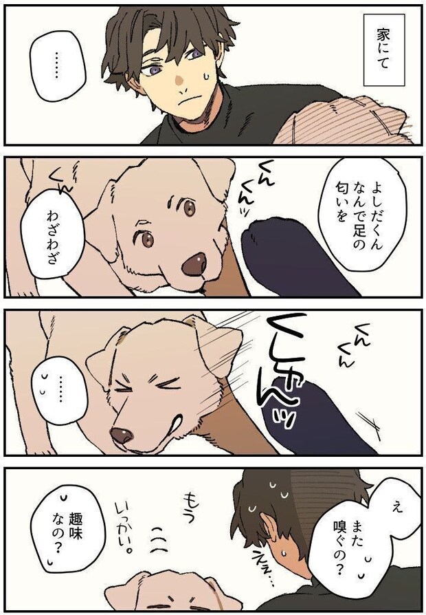 足元にひょいと顔を寄せて「足の匂いを嗅ぎにいく」吉田くんに、周一は「何それ」と思いながらも生暖かく見守っていた。