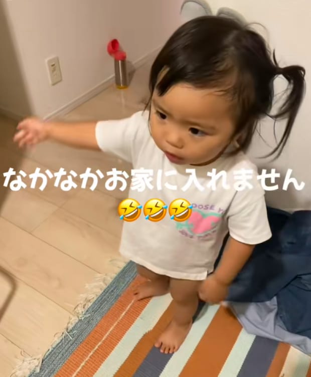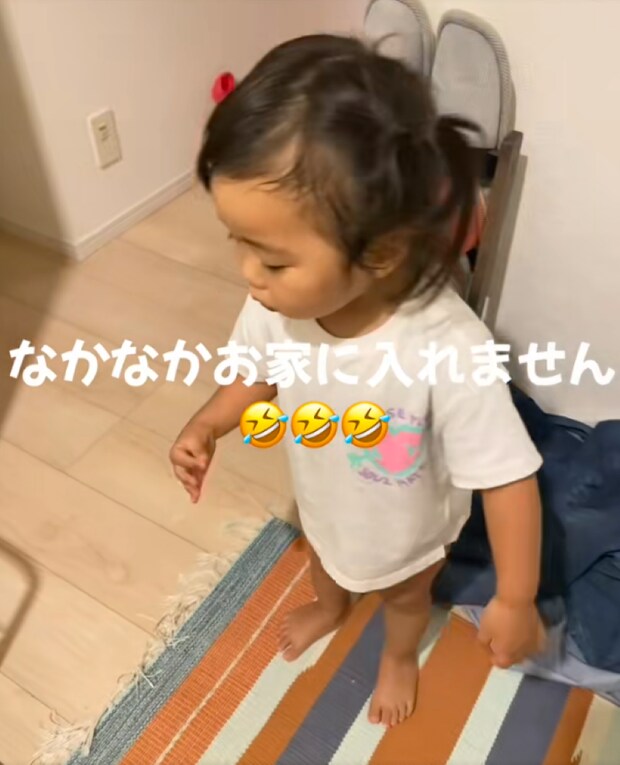 お仕事から帰ってきたパパを出迎える女の子。お話ししたいことがありすぎて、なかなか中に入れません(笑)。
