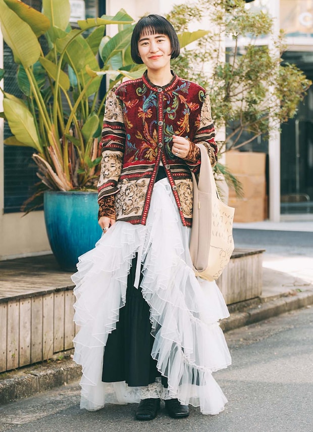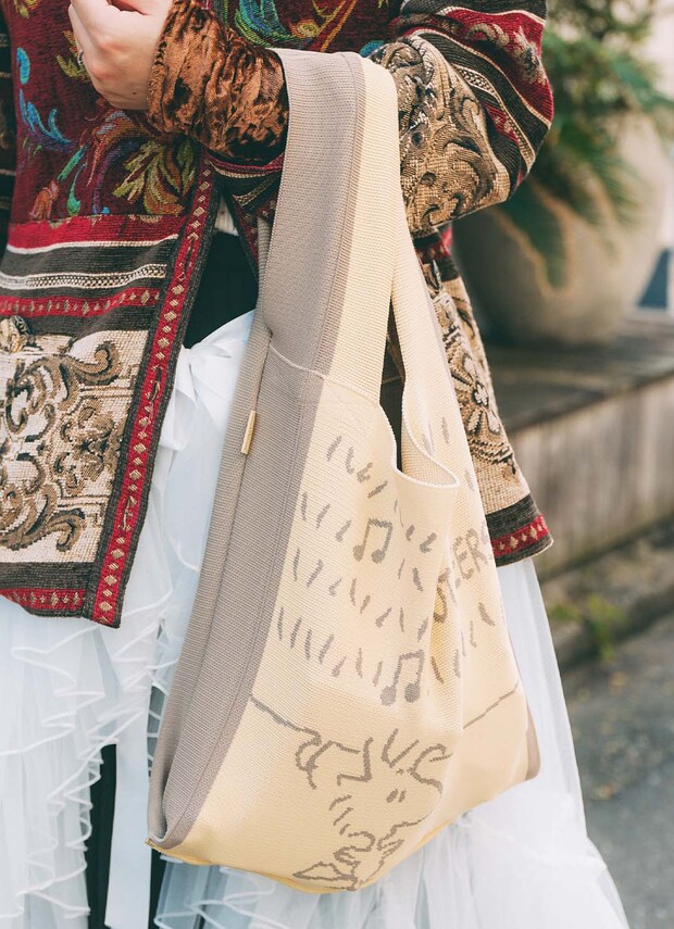 トートバッグは伊勢の『スヌーピーストア』で購入。ポップなアイテムを投入して、カジュアルダウンしたのがグッド!