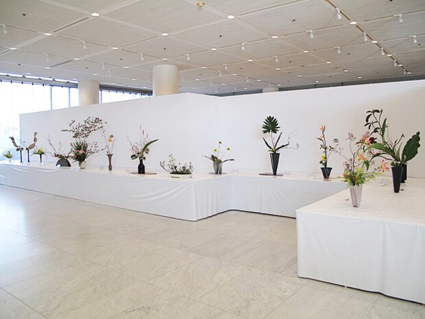 県内各地から多様な流派が集結し、丹精こめて活けられた草花が会場を華やかに彩ります。