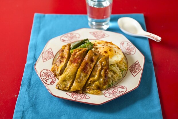 台湾現地のレストランで提供されていた「排骨炒飯」から着想を得た。豚肩ロース肉に五香粉と調味料で下味をつけ、衣とカレー粉をまとわせて揚げた排骨を使用している。五香粉を控えめにしながらも味付けにカレー粉を効かせ、日本人の味覚に合わせた調整をしている。