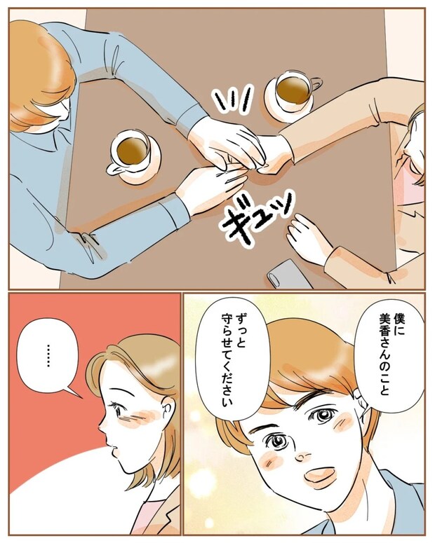 すると、佐藤さんは突然私の手を握りしめて、「僕に美香さんのこと、ずっと守らせてください」と真っ直ぐな瞳で言いました。あまりに突然の出来事に、言葉が出てきませんでした。