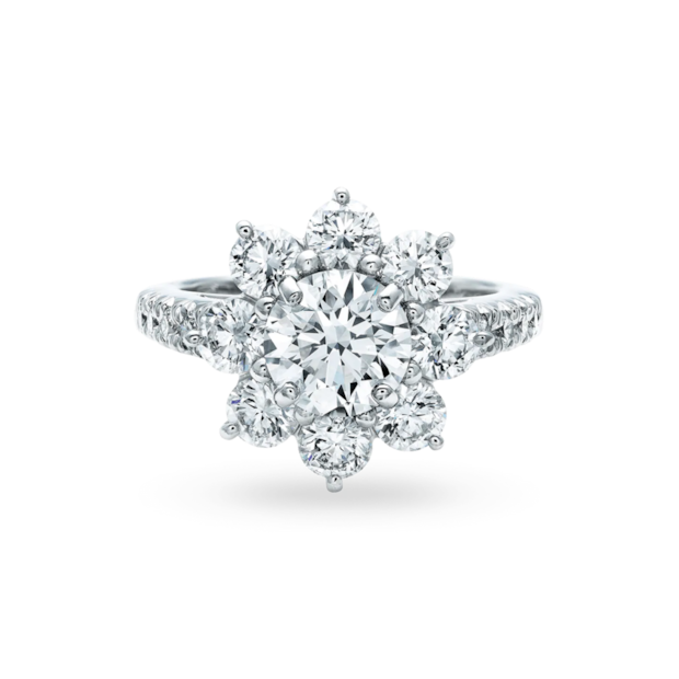 そんな言葉が自然とこぼれるほど、安西さんを惹きつけるハリー・ウィンストンを代表するのが、名作サンフラワー・コレクション。1950年代、ひまわりの生命力と優雅な自然美に着想を得て誕生したこのコレクションは、満開の花が描く完璧なシンメトリーと、センターストーンを囲む光輪のようなダイヤモンドが印象的。全ての作品はニューヨークのアトリエで、熟練の職人技と徹底した美意識のもとに制作されています。ダイヤモンドを留めるプロングの一本一本に至るまで緻密に計算され、あらゆる角度から最大限の輝きを引き出すための研磨が重ねられているのだそう。本物を知る大人だからこそ、時を超えて輝き続けるその魅力を、ぜひ今年は迷わず手に入れて。