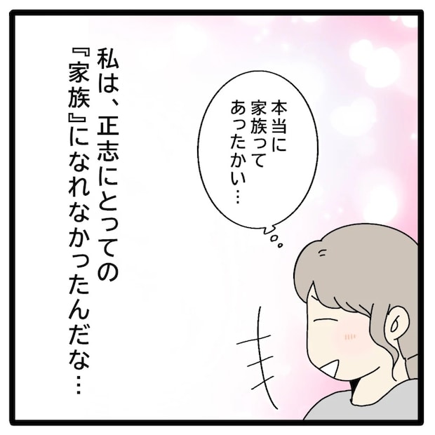 本当に家族ってあったかい・・。家族の温かさをしみじみと感じつつ、私は正志にとっての「家族」になれなかったんだな・・という思いが浮かんで胸がチクリとしました。