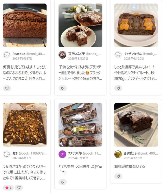 つくれぽ(つくりましたフォトレポートのこと) にも、「しっとりして絶品です」「おしゃれでおいしい」など、たくさんの絶賛コメントが届いていますよ。