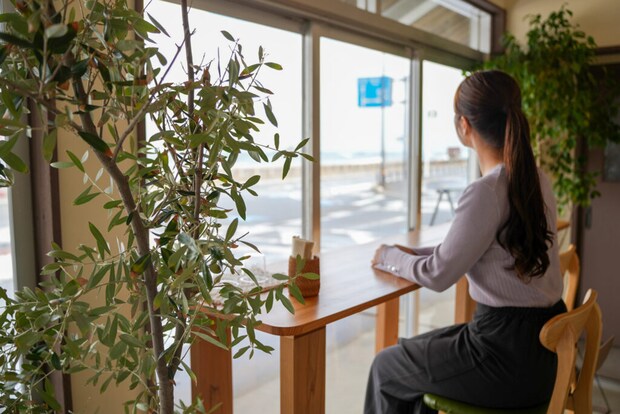 目の前には白兎海岸が広がっていて、窓際の席からは海を眺めながら、ゆったりとした時間を過ごせます。