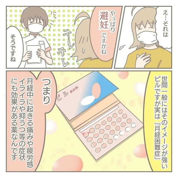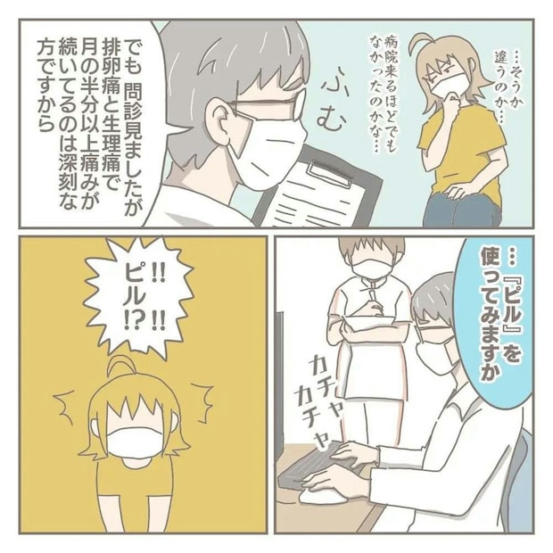 夫と話し合ったあと、ヨカさんは自分自身の問題に目を向けます。ひどいPMSの症状を産婦人科で伝えたところ、ピルを処方されます。ピルを飲むことで、今の状態から解放されるのでは、と期待が高まります。