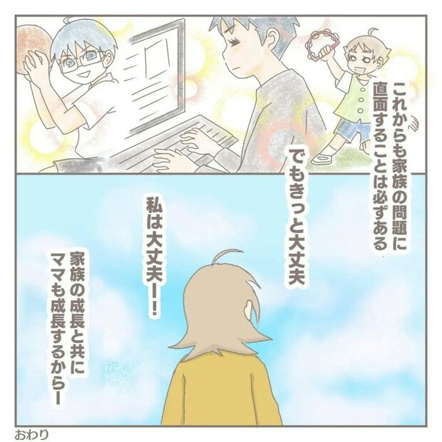 完璧な母親はいません。つらいときは1人で耐えるのではなく、誰かに助けてもらったり、一度現実から退避してもいいのです。この作品を読むと、家族のためにも肩の力を抜く大切さに気付かされます。家族みんなが自分自身を大事にすることが、お互いを労わり合うことにつながるのかもしれませんね。