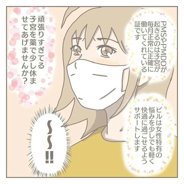 ピルと聞いて避妊薬のイメージを持っていたヨカさんですが、説明を聞いてPMSにも効果があることを知ります。