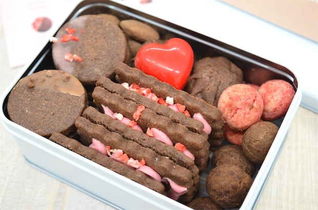 缶の中には、「チョコレート × いちご」というテーマで、8種類(合計34枚)の焼き菓子がぎっしり。