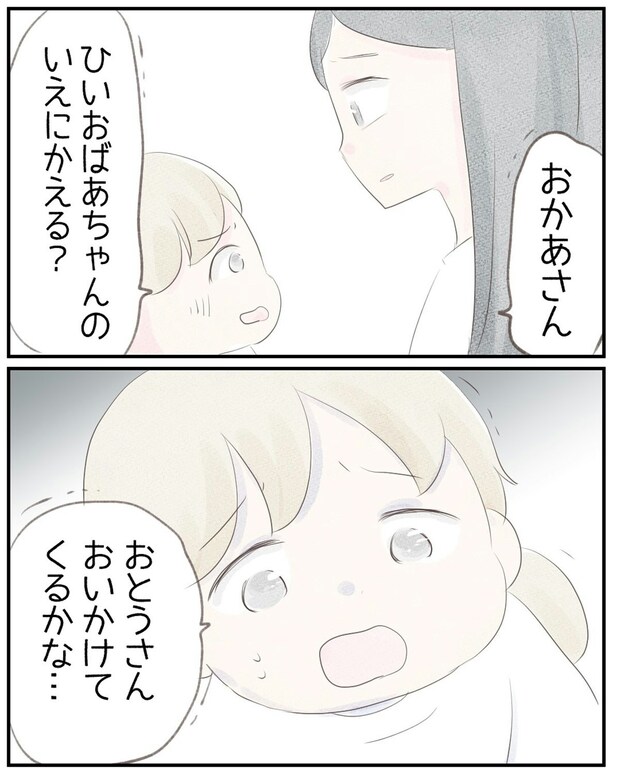 夫に怒鳴られている姿を娘に見られてしまい、申し訳なさそうなゆうさん。そんな母親に娘が「ひいおばあちゃんの家にいこう」と言ってくれました。