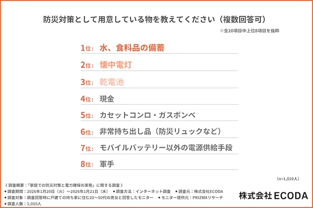 その防災グッズだけで足りてる? 戸建て世帯が用意している防災グッズ