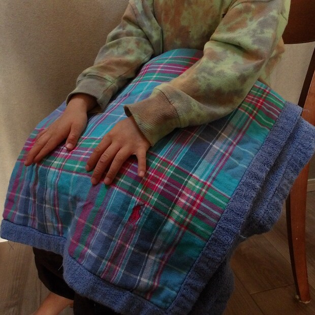 ピンク、グリーン、ブルー、ホワイトとpopな配色がとても可愛らしいブランケット。柔らかくて肌触りが良く、気づくとこどもたちが自分で持ってきて使っています☺︎